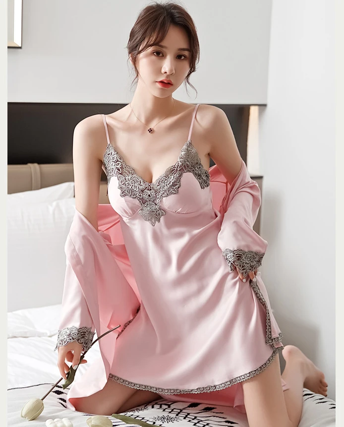 5pc de seda robe sono terno das mulheres rendas pijamas de cetim vestido conjunt