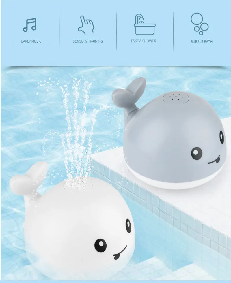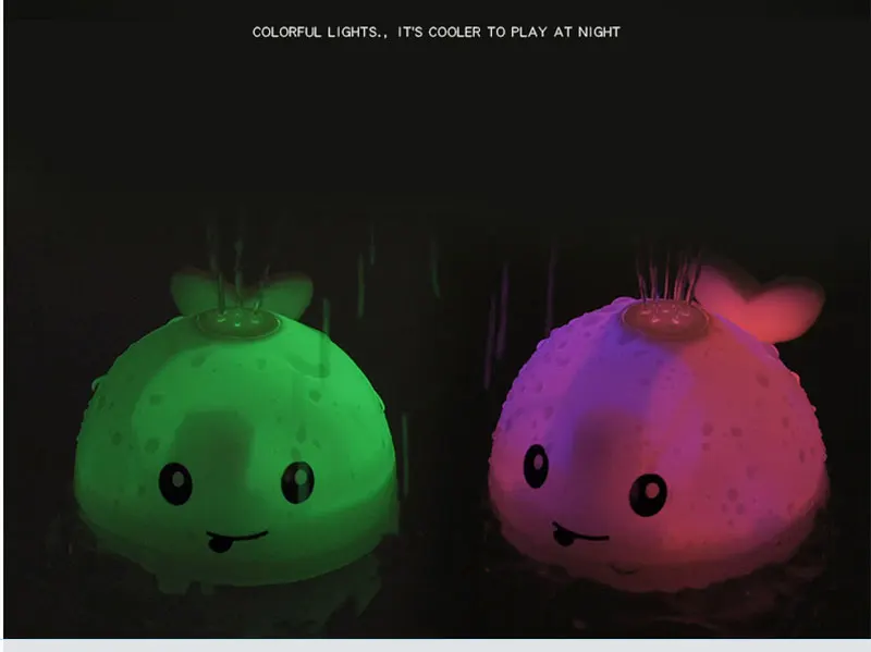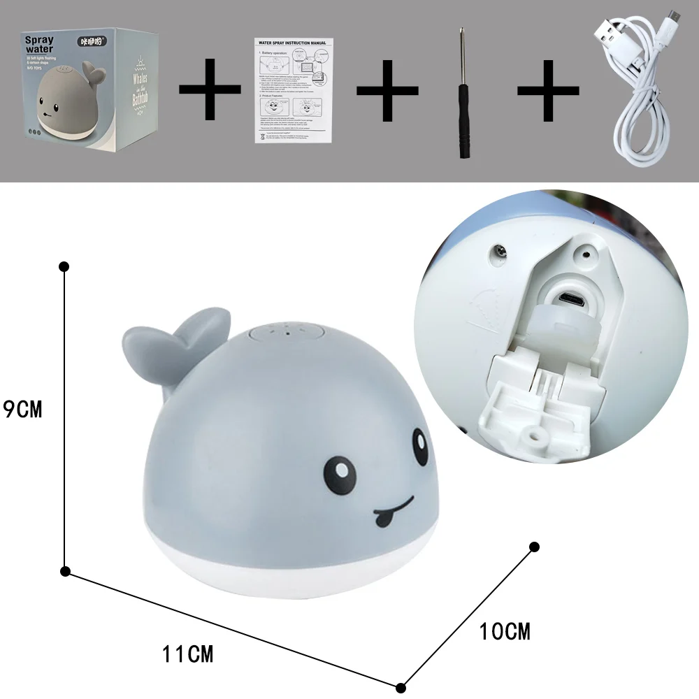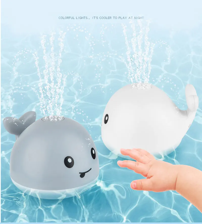 Chuveiro infantil carregando com luzes e spray de água baleia brinquedo ocorrê