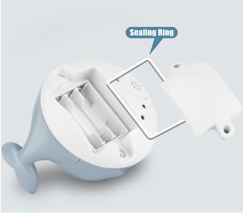 Recomenda-se que a pequena baleia retire a bateria após brincar e seque o slot da bateria, o que pode prolongar a vida útil do brinquedo