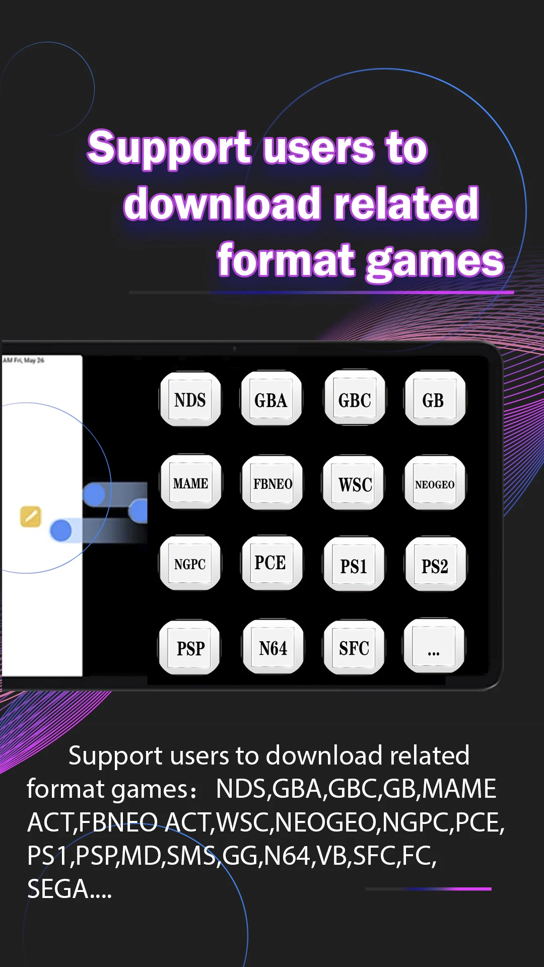 Support users to download relatedformat games: NDS,GBA,GBC,GB,MAME ACT,FBNEO ACT,WSC,NEOGEO,NGPC,PCE,PS1,PSP,MD,SMS,GG,N64,VB,SFC,FC,SEGA...
