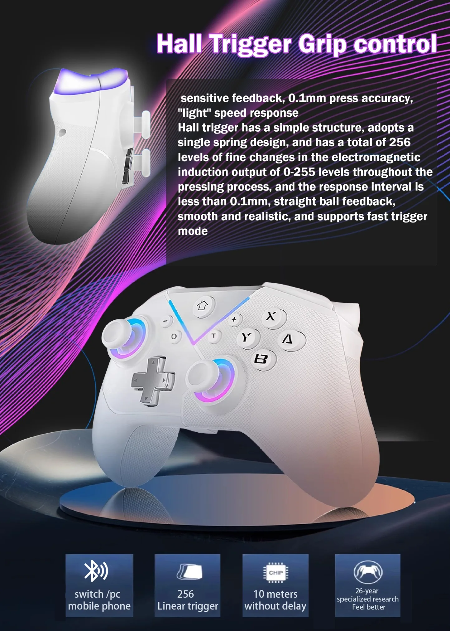 sensitive feedback, 0.1mm press accuracy, "light" speed responseHall trigger has a simple structure, adopts a single spring design, and has a total of 256 levels of fine changes in the electromagnetic induction output of 0-255 levels throughout the pressing process, and the response interval is less than 0.1mm,straight ball feedback, smooth and realistic, and supports fast trigger mode