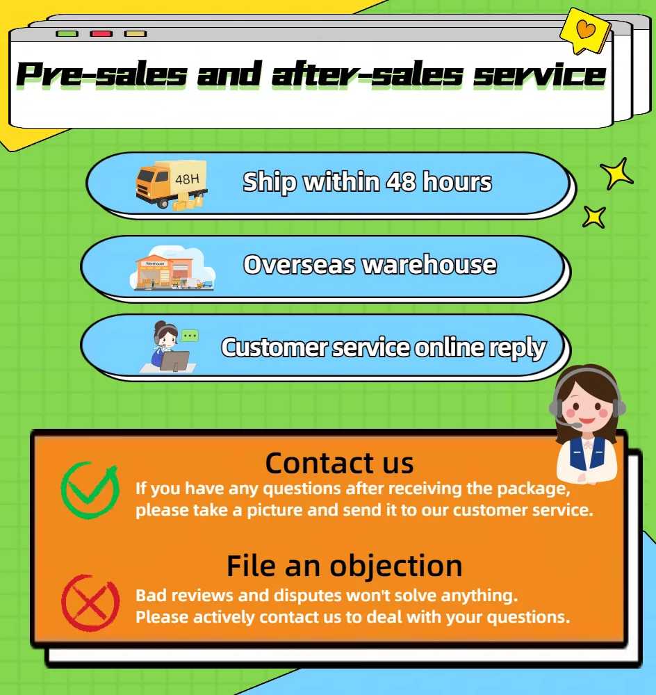 Pre-sales and after-sales service: 1.Ship within 48 hours
