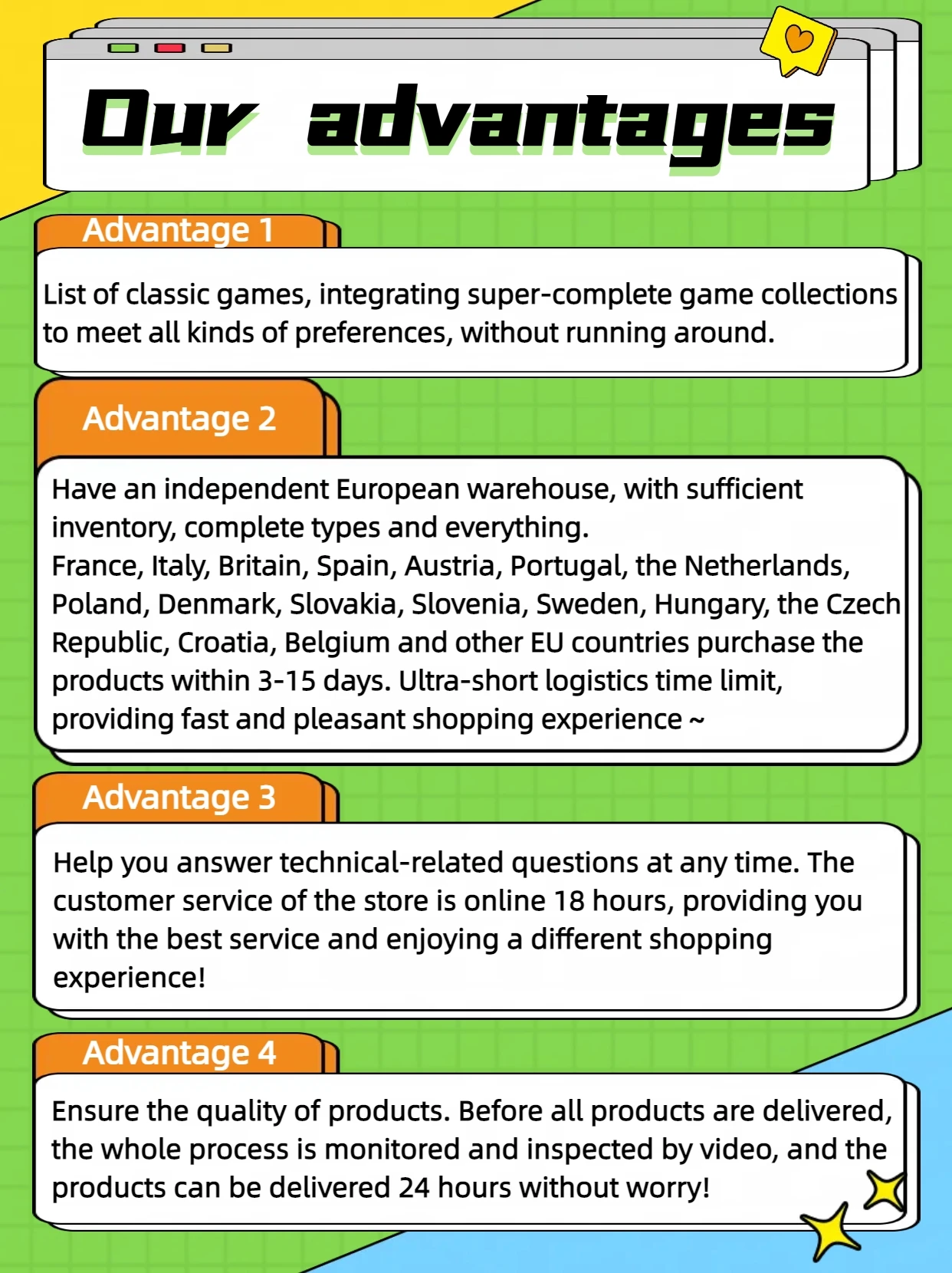 France, Italy, Britain, Spain, Austria, Portugal, the Netherlands, Poland, Denmark, Slovakia, Slovenia, Sweden, Hungary, the Czech Republic, Croatia, Belgium and other EU countries purchase the products within 3-15 days. Ultra-short logistics time limit, providing fast and pleasant shopping experience ~