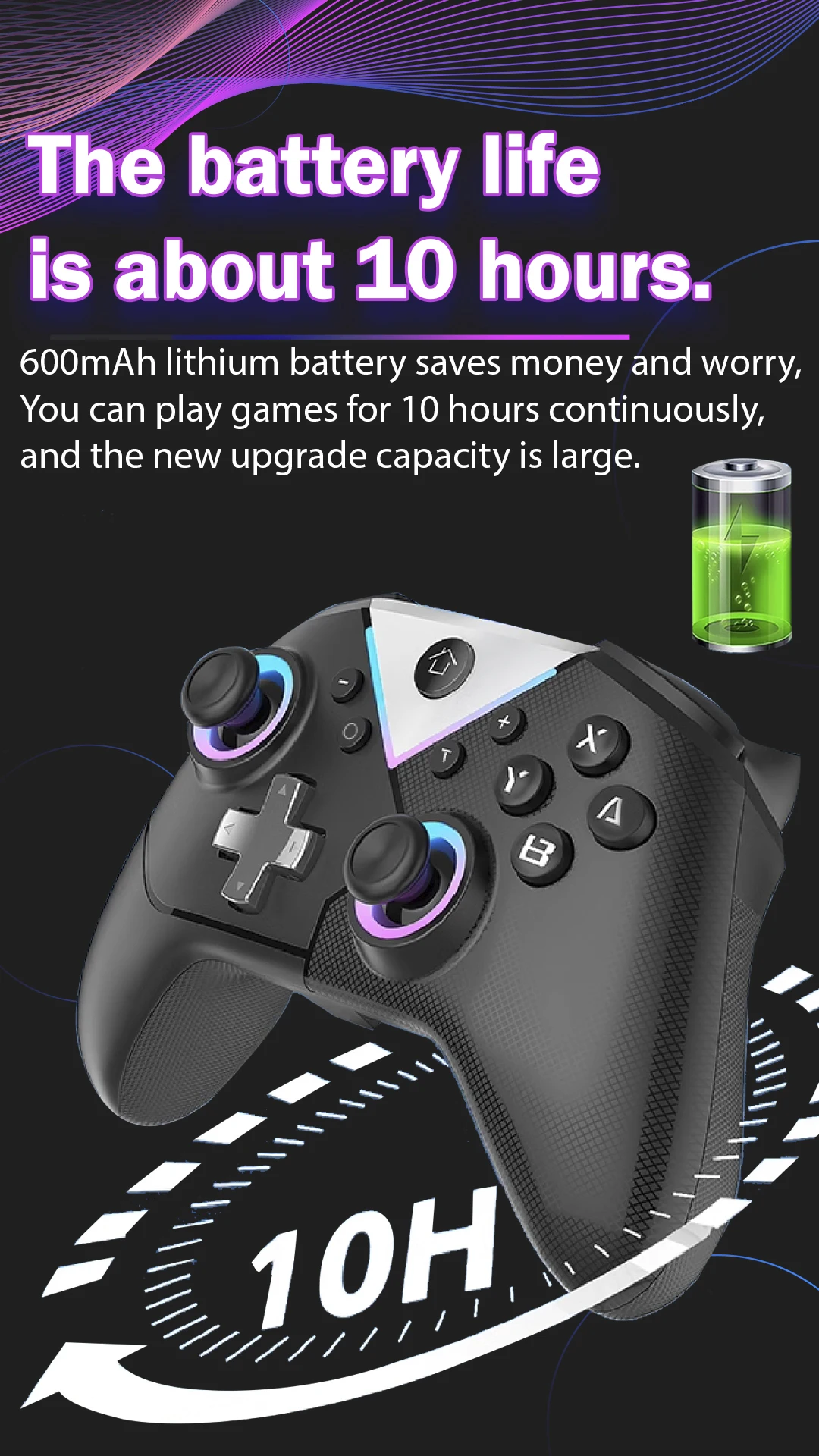 600mAh lithium battery saves money and worry, You can play games for 10 hours continuously, and the new upgrade capacity is large.