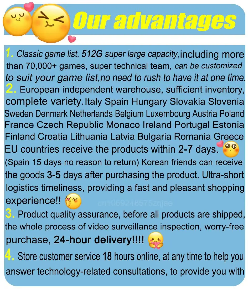 1. A lista clássica do jogo, grande capacidade 512G super, incluindo mais de 75,000 + jogos, equipe técnica super, pode ser personalizada para serir sua lista do jogo, não precisa se apressar para tê-lo ao mesmo tempo.