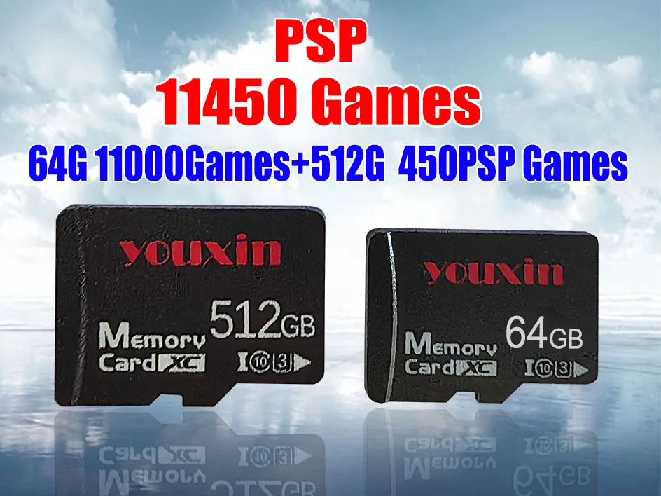 Com 64G + 512G ---- Com um cartão do jogo 64G 11000 GAME + 512G 450 PSP, aproximadamente 11450 jogos
